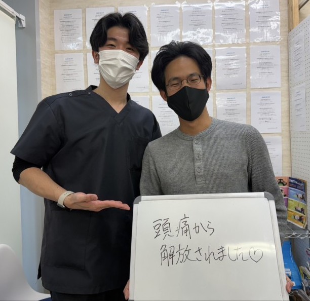 利用者様とスタッフデスクワークで長年身体のバランスが悪く、そこから頭痛や他の不調に悩まされ、しょっちゅう薬を飲む生活でしたが、先生の施術を受けてから段々と調子がよくなり今では薬を飲むことなく生活を送れてます!